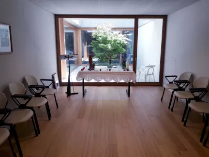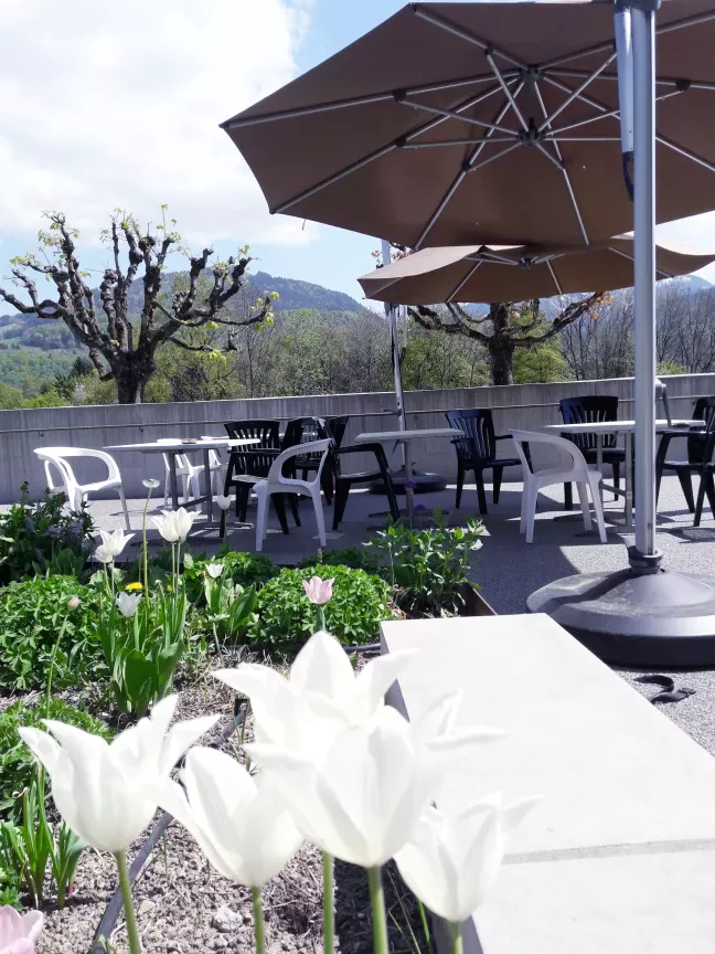 Une chapelle est à disposition dans le bâtiment "Les Pléiades" et une salle de recueillement dans le bâtiment "Corbetta". Ces lieux permettent à toute personne de venir prier. Des chapelets et des messes y sont célébrés.